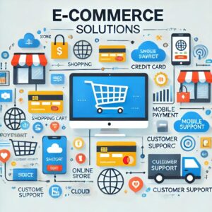 E-commerce solutions refer to the systems, platforms, and strategies that allow businesses to sell products or services online. They include: